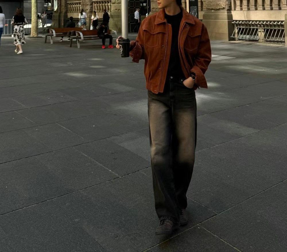 暗啡質感牛仔褲