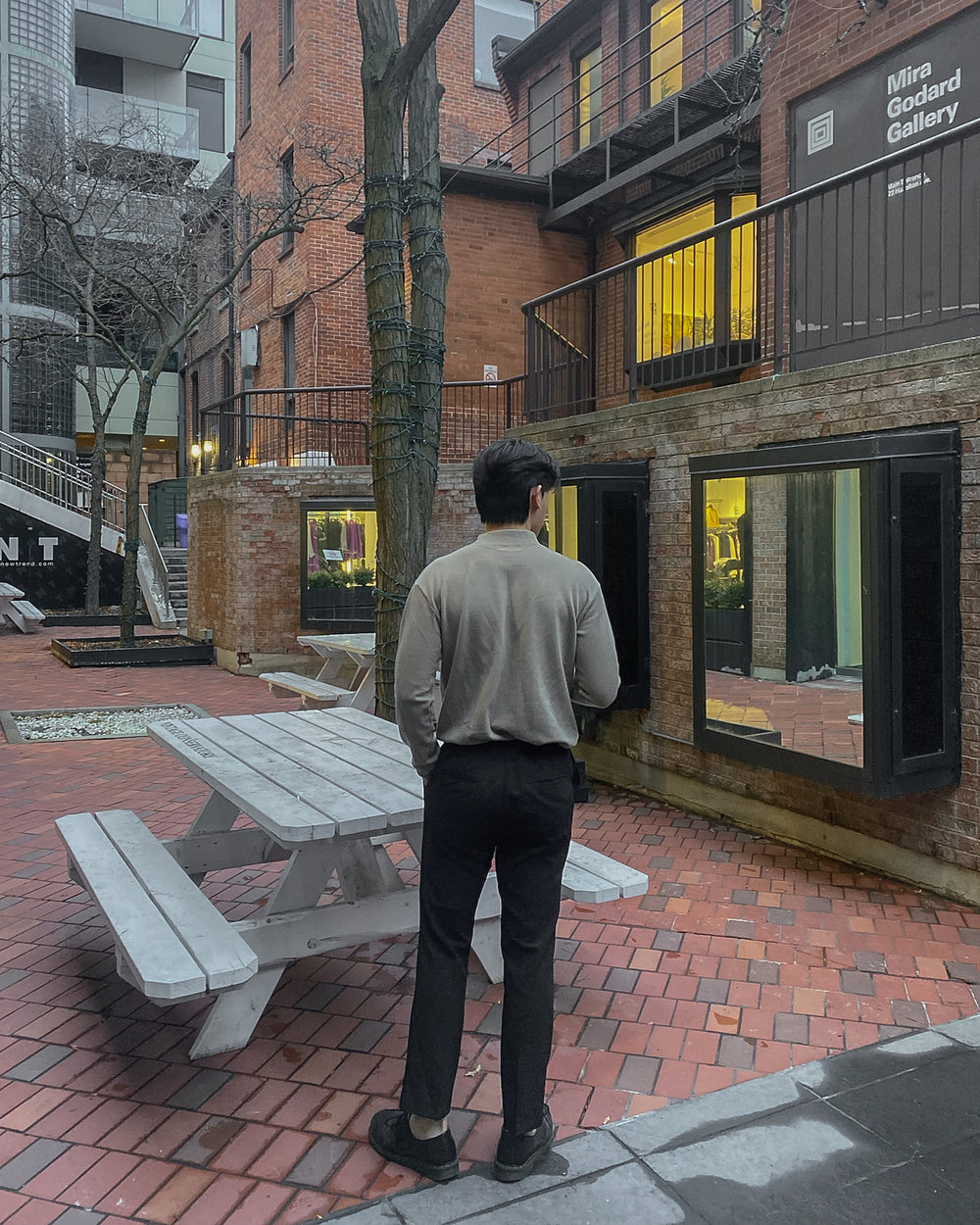 黑色直腳長褲
