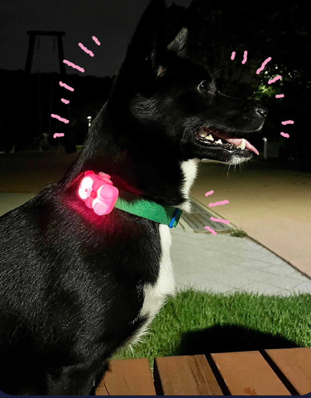 • 鮮明 LED 燈光:燈光明亮,提升夜間散步時的可視度與安全性。