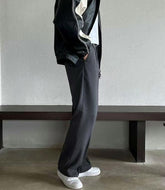 半闊筒長褲 深灰色S現貨