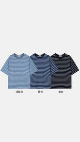男女裝系列 水藍間條短袖上衣