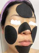 雙面黑棉設計:一面壓紋黑炭棉深入清潔堵塞毛孔、去除老廢角質與黑頭,另一面光滑棉柔化膚質、提升吸收度